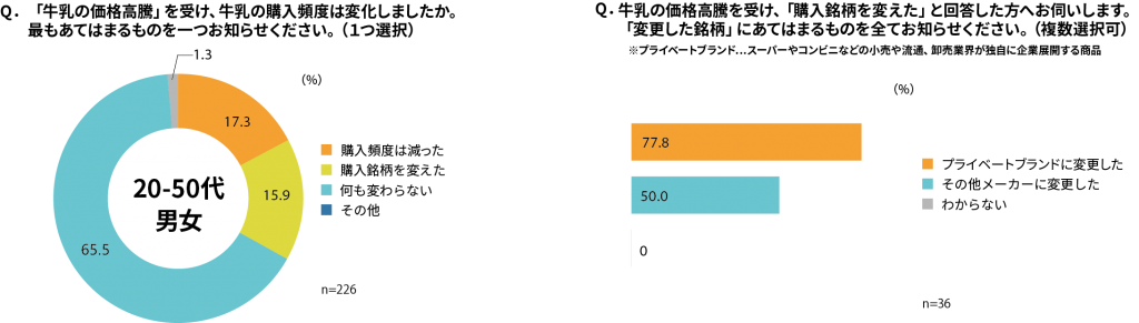 牛乳の購入銘柄を「変えた」人の内、約7割がPB商品に変更