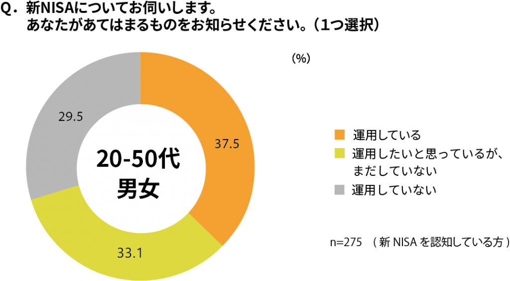 なお現在、新NISA運用中の方々の約7割は「つみたてNISA」から運用をしていた、いわば既存ユーザーとも分かります。