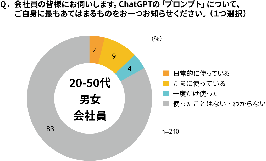 今回は会社員を対象に、前回のSmart researchに引き続き「ChatGPT」に関する調査を実施。話題の「プロンプト」について焦点を当て調査しました。
