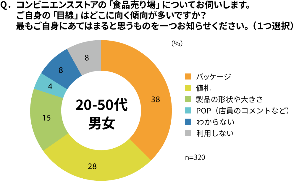 日常のちょっとした疑問を独自のミニリサーチ形式にて発信していく「Smart research」 今回も前回に引き続き、コンビニでの食料品売り場を見る時の目線の傾向について調査を実施しました。