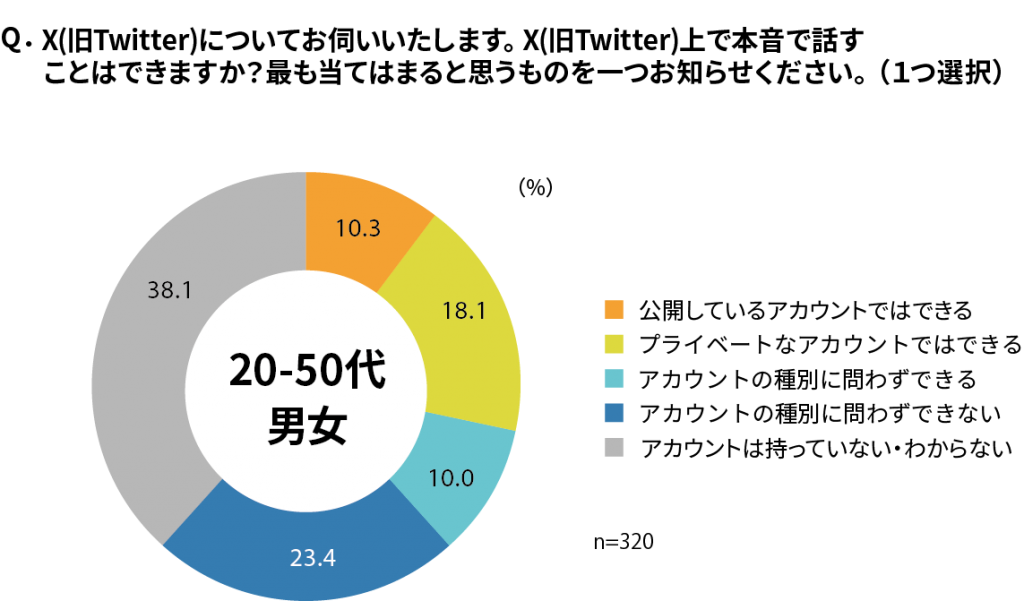 まずX(旧Twitter)に関して、「本音で話すことができる」と回答している人の割合は、