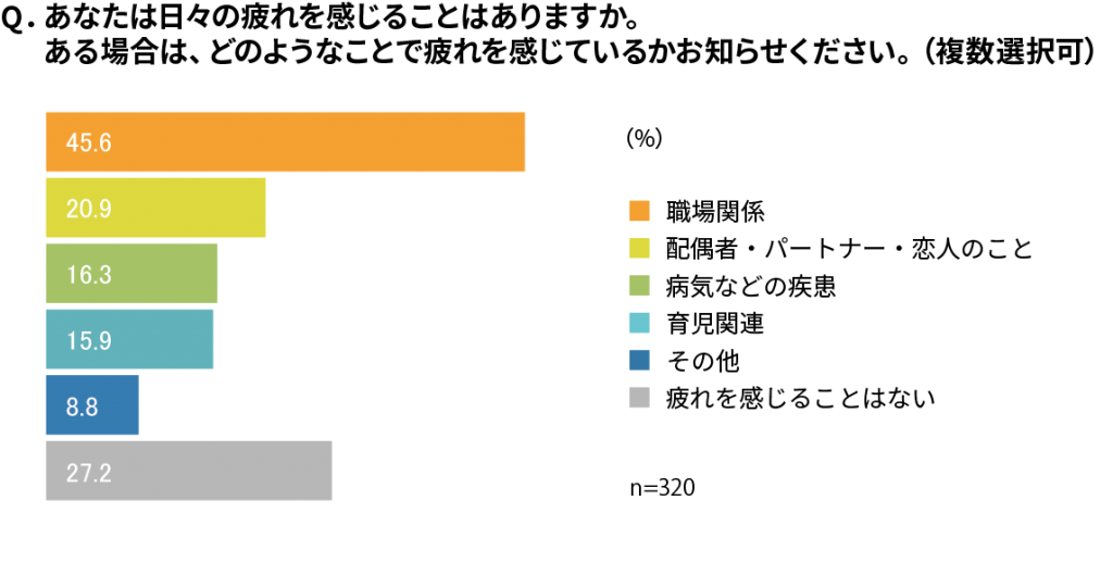 まず、日々の疲れを感じる場面について聴取したところ、