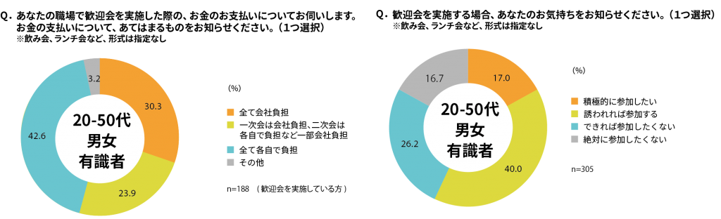 歓迎会を「仕事」と捉え参加に後ろ向きな方が多いという情報も耳にしますが、参加に前向きな方もまだまだ多いようです。