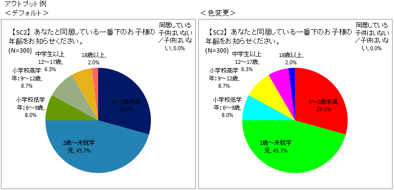 GT集計(単純集計)・クロス集計で作成するグラフの種類やデザインを変更できます。 カスタマイズ可能なので、ご希望通りのグラフが作成できます。